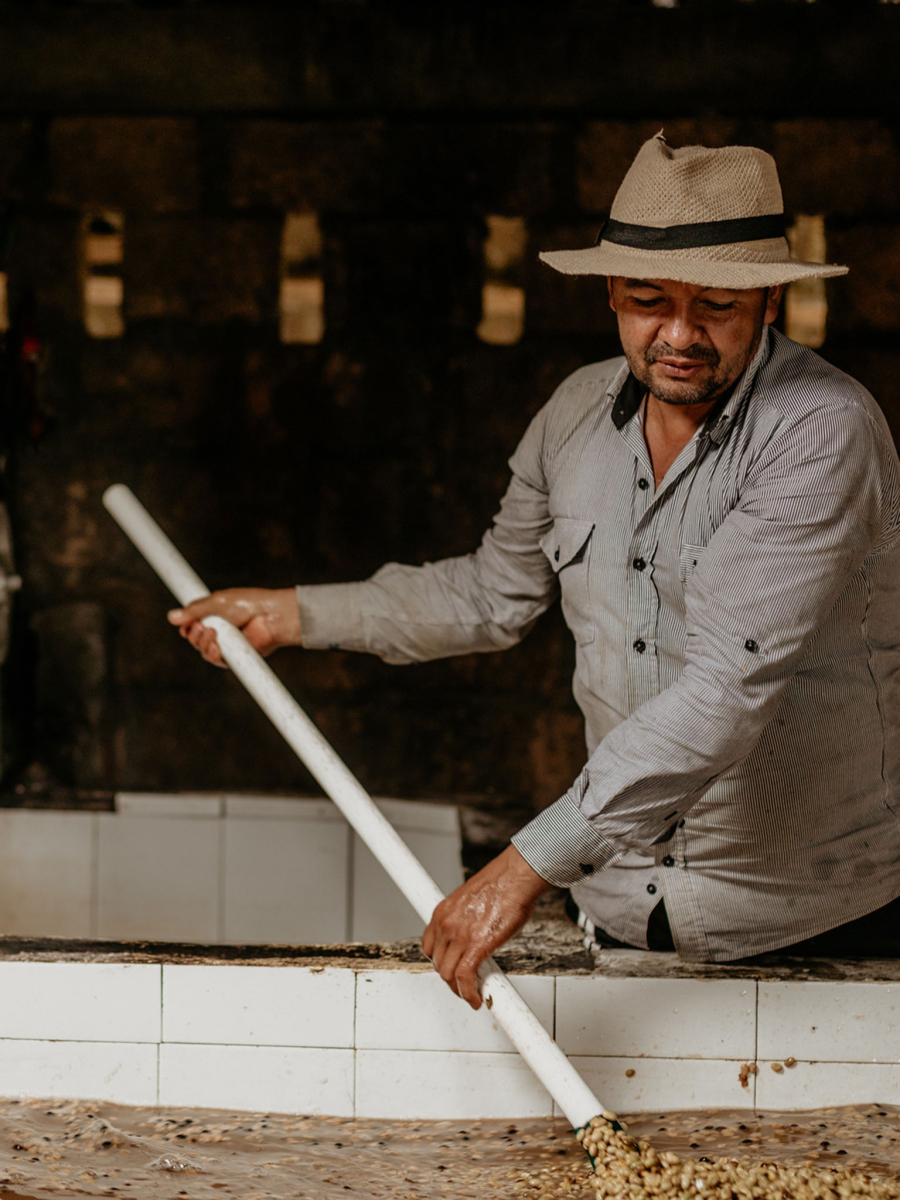 - Tolima-kaffen forarbejdes efter den traditionelle washed-metode. De modne kaffebær afpulpes, fermenteres og skylles, inden bønnerne soltørres. Metoden fremhæver kaffens lyse syrlighed og rene smag, mens klimaet i Colombia sikrer en jævn tørring. Resultatet er en balanceret kaffe med klarhed og friskhed i koppen.
